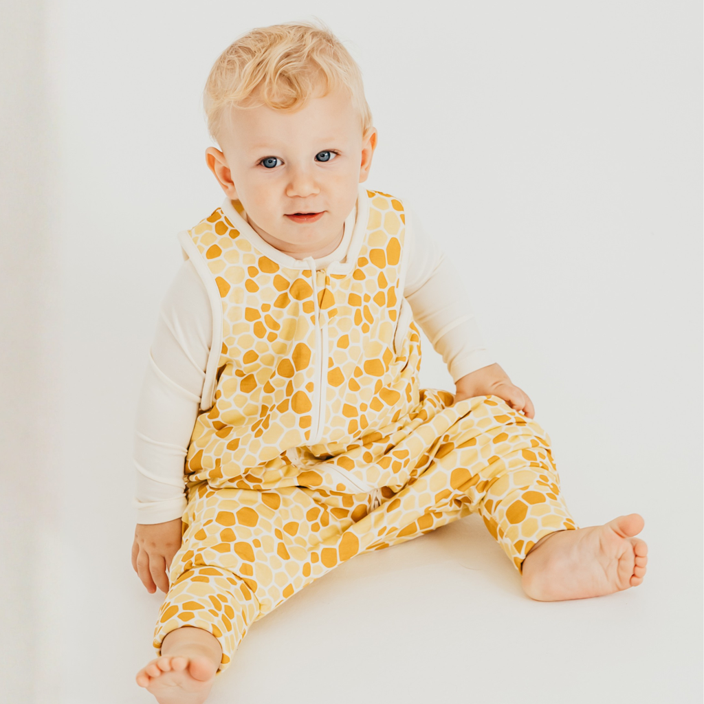 21–23 °C-os szobába ajánljuk az 1.5 TOG-os 3 rétegű, Bélelt Tipegő Hálózsákot. A zsiráfos mintás, kamáslis, ujjatlan tipegő hálózsák tökéletes választás a hűvös szobákba, téli éjszakákra.